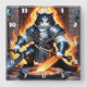 Armoured Cat Preparing for Battle in Fiery Setting Square Wall Clock
