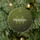 Army green geometric mesh pattern Monogram Cerami Ceramic Ornament