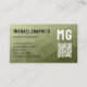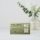 Army green gradient geometric mesh pattern QR code Monogram Business Card. Personalize it with your QR code, monogram, occupation, contacts and more business information. Elegant modern triangle geometric mesh with light dark Army green ombre gradient.