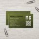 Army green gradient geometric mesh pattern QR code Monogram Business Card. Personalize it with your QR code, monogram, occupation, contacts and more business information. Elegant modern triangle geometric mesh with dark Army green ombre gradient.