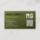 Army green geometric mesh pattern QR code Business Card