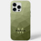 Army green light geometric mesh pattern Monogram iPhone 15 Case. Personalize with your custom initial and name. Triangle geometric mesh with light to dark Army green ombre gradient.