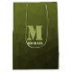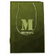 Army green olive geometric mesh pattern Monogram Medium Gift Bag