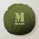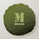 Army green olive geometric mesh pattern Monogram Round Pillow