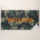The camo pattern features shades of green and brown, creating a subtle and stylish look that blends in seamlessly with your natural surroundings. But what sets this towel apart is the personalized touch - your name printed in a bold, contrasting dirty orange colour. This adds a pop of colour to the design, making it stand out and easy to spot on a crowded beach.