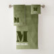 Army light green geometric mesh pattern Monogram Bath Towel Set