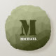 Army light green geometric mesh pattern Monogram Round Pillow