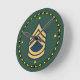This Army clock is decorated with the Army colours green and gold, and Sergeant First Class insignia.