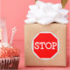 Arrêtez les autocollants. Feuille d'autocollants ronds de panneau rouge. Ces autocollants stop sont entièrement personnalisables, ajoutez vos textes et images !