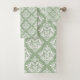 Elégant damas vintages à fleurs blanc dans un motif géométrique transparent sur un arrière - plan vert sauge personnalisable/changeable.