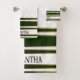 La serviette de bain contemporaine blanche, vert émeraude et or est offerte à une personne spéciale, à un ami et à un membre de la famille qui aime les combinaisons de couleurs simples mais élégantes et les designs. Personnalisez le nom et achetez maintenant.