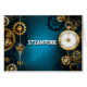 Arrière - plan turquoise, texturé, steampunk avec des engrenages en laiton et or, une clé en argent et l'horloge. Style Steampunk.