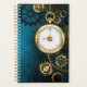 Arrière - plan turquoise, texturé, steampunk avec des engrenages en laiton et or, une clé en argent et l'horloge. Style Steampunk.
