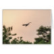 Entre les arbres et au milieu des couleurs chaudes du soir, un aigle chauve s'approche de son arbre de nidification.