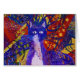 When I was a kid, my family had a dog, but I've spent most of my adult life living with cats (and the women and children) who love them. I do love dogs, but cats won my heart long ago. They're just..well, the cat's pajamas. (Yes, ancient reference.) You "get" cats or you don't. I do. This artist catches the grace, dignity, goofiness and unpredictable charm of our bewhiskered feline friends. I plan to send these to certain friends with short notes from me, and also give a few as gifts as well. Beautiful drawing, lively colors on high quality stock. First class product. Someone who gets might will keep it on display for some time.