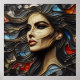 A portrait of a beautiful woman exuding arrogance in an abstract style. The stained glass technique employs artistic golden lines, blending red, blue, and charcoal colours. Her hair cascades like waves in the ocean, adding a touch of vibrant elegance to this captivating portrayal of confidence.