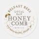 Étiquette attrayant pour nid d'abeille. Personnalisez avec votre nom, adresse et poids net du produit. Design de nid d'abeille irisé jaune et or en arrière - plan, avec son propre abeille réaliste.