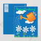 Arrosage et fleurs, carte postale