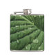 Une close d'une feuille d'hosta verte est présentée sur ce flacon de photographie d'art botanique. Les veines créent un motif abstrait en spirale circulaire. La pluie récente a déposé des gouttelettes d'eau et les gouttes de pluie reflètent la lumière. Ce plante est aussi connu comme funkia, plantain lily ou giboshi (au Japon). Une bonne idée pour les jardiniers ou les amoureux de la nature.