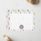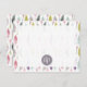 Flat notecard featuring a pattern with illustrations of arrows and feathers. Personalize the monogram.