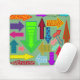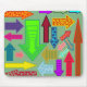 This mouse pad has a design of arrows in various colours with different patterns on them.