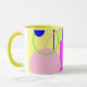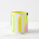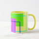 Cette jolie tasse lumineuse présente mon art graphique original de lignes et de formes dans les tons bleu, jaune, rose et vert. Il a un style abstrait et rappelle l'époque rétro de l'art. L'intérieur et la poignée ont une tonalité harmonieuse de jaune. Ce sont des tasses de 11 onces, juste la taille idéale pour votre café ou thé maison - ou même du chocolat chaud! Cela ferait un grand cadeau, et vous pouvez mettre des paquets de café, des sacs de thé ou du chocolat chaud à l'intérieur. Une autre idée de cadeau est de mettre un petit plante dedans pour le rendre spécial