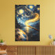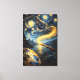 Step into this immersive vertical canvas print where a classic painter’s brush and floating palette appear to paint a swirling golden cosmic vortex before your eyes, as if you are the invisible artist. Inspired by Starry Night, Dali, Turner, and Alphonse Mucha, this nearly finished masterpiece captures the motion, fluidity, and energy of a suspended gesture. The brush hairs above the golden flow and the palette subtly off-frame create the illusion of an active hand, giving the viewer a unique sense of participating in the creation.