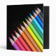 Colourful pencils binder for art class or to store your artwork or scrapbooking! Features a row of bright rainbow coloured pencils and colourful text on the spine. The black background of the folder will make it look striking on any desk or shelf. Great for college students, art students, crafters or will make a great gift for any art lover.