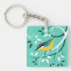 Illustration vectorielle stylisée d'une sittelle à poitrine rousse avec des volutes de branches et des feuilles sur un fond de couleur aqua