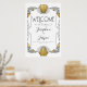 Art Déco 1920 Affiche de bienvenue blanche et or