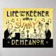 Cette affiche unique, d'aspect antique, est conçue comme un design art déco des années 20. Les deux hommes et une femme dans le design sont apparus à l'origine dans une vraie publicité de chandeliers des années 1920 dans un journal. Ici, ils ont été transformés en musiciens et fêtards. L'homme sur la gauche joue du piano et la femme joue du tambour en faisant son vin. L'autre homme aime la musique. Le texte original et inspirant dit : "La vie peut être plus écologique avec un démoniste ensoleillé." Le tout dans les tons noir et jaune or/orange.