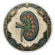 This stunning ceramic pull features a detailed anatomical illustration of a kidney, rendered in a beautiful Art Nouveau style. The design showcases vibrant green and blue hues, accented with intricate gold linework and a sunburst motif. It's perfect for adding a touch of sophisticated medical artistry to any cabinet, drawer, or piece of furniture. The unique blend of scientific accuracy and decorative elegance makes this a standout piece for those who appreciate both biology and fine art. Elevate your home décor with this exquisite kidney design, a true conversation starter.
