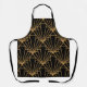 This apron has an Art Deco design of diamonds and triangles in gold on a field of black.