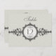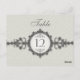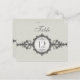 A table card that takes its influence from the Art Deco era. An ornate band, looking like a Victorian wristwatch, features a medallion holding the table number or letter with the customizable word "table" above it. The taupe background prints a subtle pattern as a watermark. Double-sided design for convenience from any angle. Available in alternate colours with matching products.