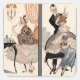 One woman is putting on her lipstick and another is having her hair styled in this French art deco print.