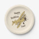 Art Deco Bi-planes - yellow Happy Birthday + name. Paper Plate