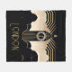 Big Ben and his tower is done in a beautiful black and gold art deco style.