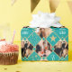 Wrap your present in Art Deco style with this custom photo gift wrap! A seamless geometric pattern, with diamond shapes, stars and stylish typography. Personalize the template with three favourite photos, the recipient's name and birthday age. A luxurious and unique way to celebrate a special birthday for family and friends! Printed colours: blue-green teal, white and gold. Available with a choice of a matte or glossy finish.