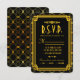 These RSVP response cards feature a black and gold colour palette, a geometric frame, geometric patterns, and other stylistic details all inspired by Art Deco and the roaring twenties. You can customize the sample text fields to your liking.