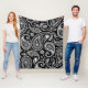 Art Deco Black and White Floral Paisley Pattern Fleece Blanket