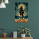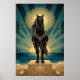 Art Deco Black Horse Mandala Sunset Teal Gold Post Poster