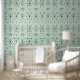 Art Deco Bloom: Mint Geometric Floral Pattern Wallpaper