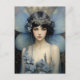 This portrait of a beautiful fairy in both Victorian and Gothic Romantic styles is simply stunning. The fairy's gaze is mesmerizing, and the artwork is rich in detail. The fairy wears a gorgeous blue dress adorned with delicate flowers.