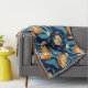 Art Deco blue orange flowers Throw Blanket
