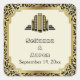 Art Deco abstract buildings black, gold wedding Save the Date sticker featuring abstract buildings and a border in Art Deco style and black and golden damask. Your text is on a beige/ecru frame. This elegant design is a modern approach to a vintage/retro style that resembles that of the Roaring 20’s and The Great Gatsby and adds a hint of luxury and glamour to your wedding. It is part of a wedding set and is completely customizable. Some elements are courtesy of All-Free-Download.com