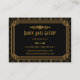 These business cards feature a black and gold colour palette, a geometric frame, geometric patterns, and other stylistic details all inspired by Art Deco and the roaring twenties. You can type in your name, job title, phone numbers, email address, and website in the sample text fields.