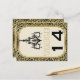 Art Deco chandelier black, gold table number postcard featuring a black chandelier, a border in Art Deco style and black and golden floral damask on beige/ecru. This elegant design is a modern approach to a vintage/retro style that resembles that of the Roaring 20’s and The Great Gatsby. It is part of a wedding set and is completely customizable.