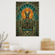 Ce chat noir royal art déco trône avec un collier géométrique et des triples arches dorées encadrant un halo de soleil orange dramatique. Les détails du marbre sarcelle et la composition opulente des années 1920 créent un luxe inégalé pour les salons, les entrées et les espaces sophistiqués où les amateurs de chats exigent l'art mural le plus raffiné.
