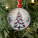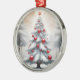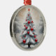 This festive Christmas Holiday design features an art deco Christmas tree with snow and luxury red ornaments. The background is a magical forest in the winter.
