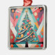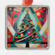 This art deco geometric design of a Christmas tree with ornaments and bubbles.